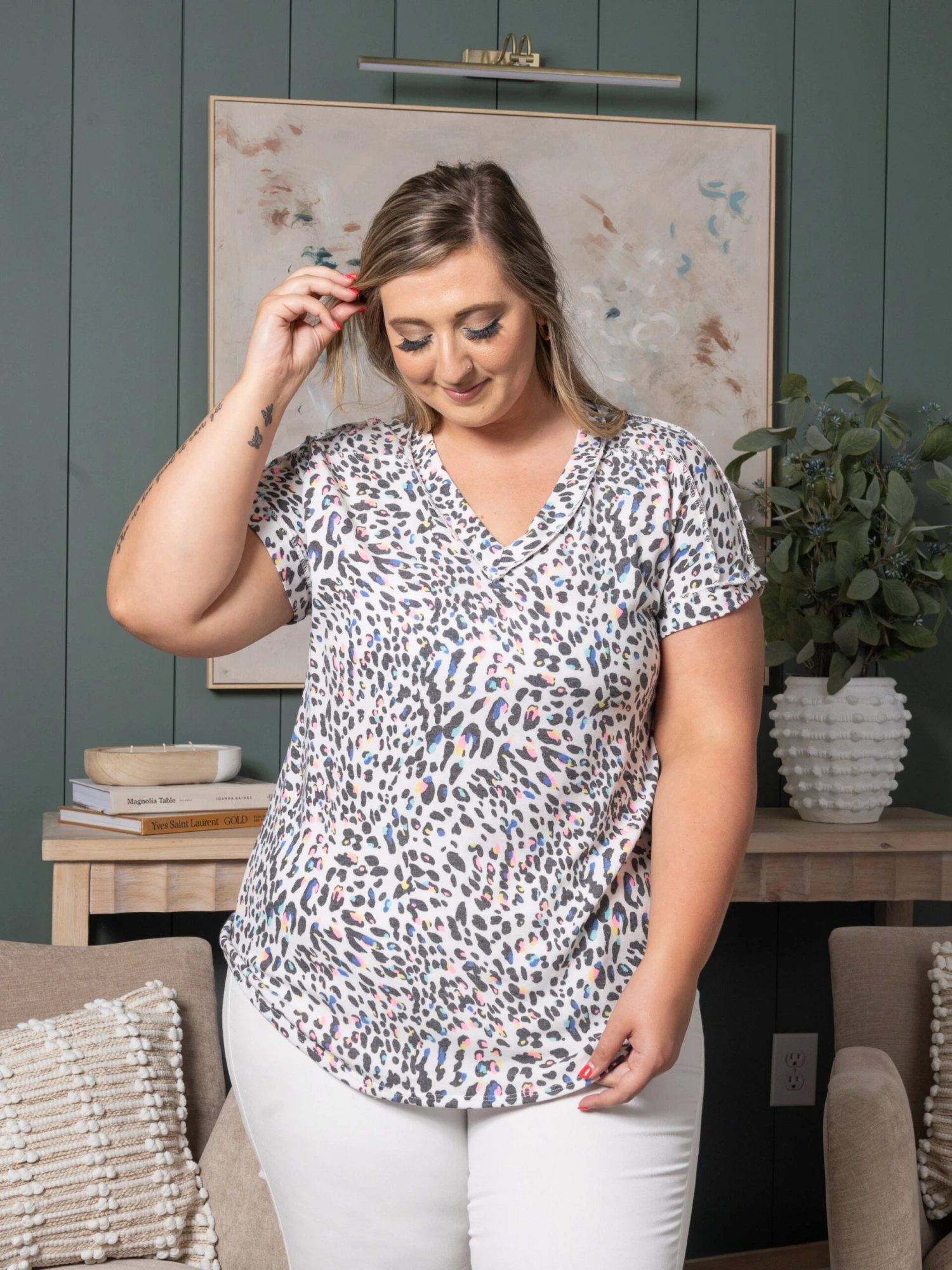 Features: V-Neck, Dolman Sleeve, Seam, Animal Print