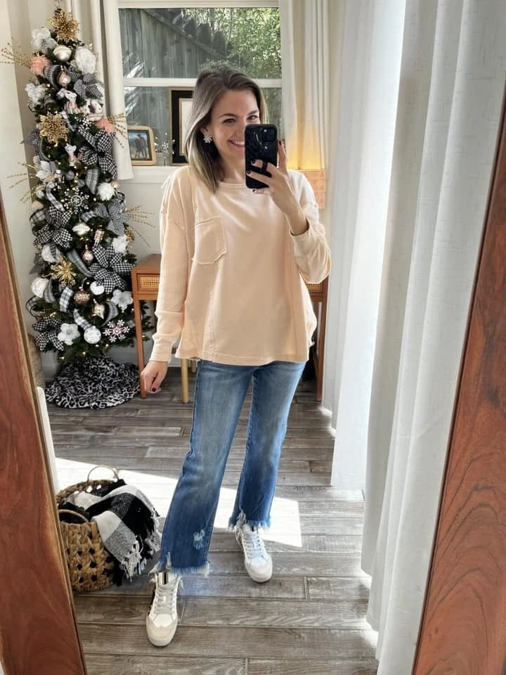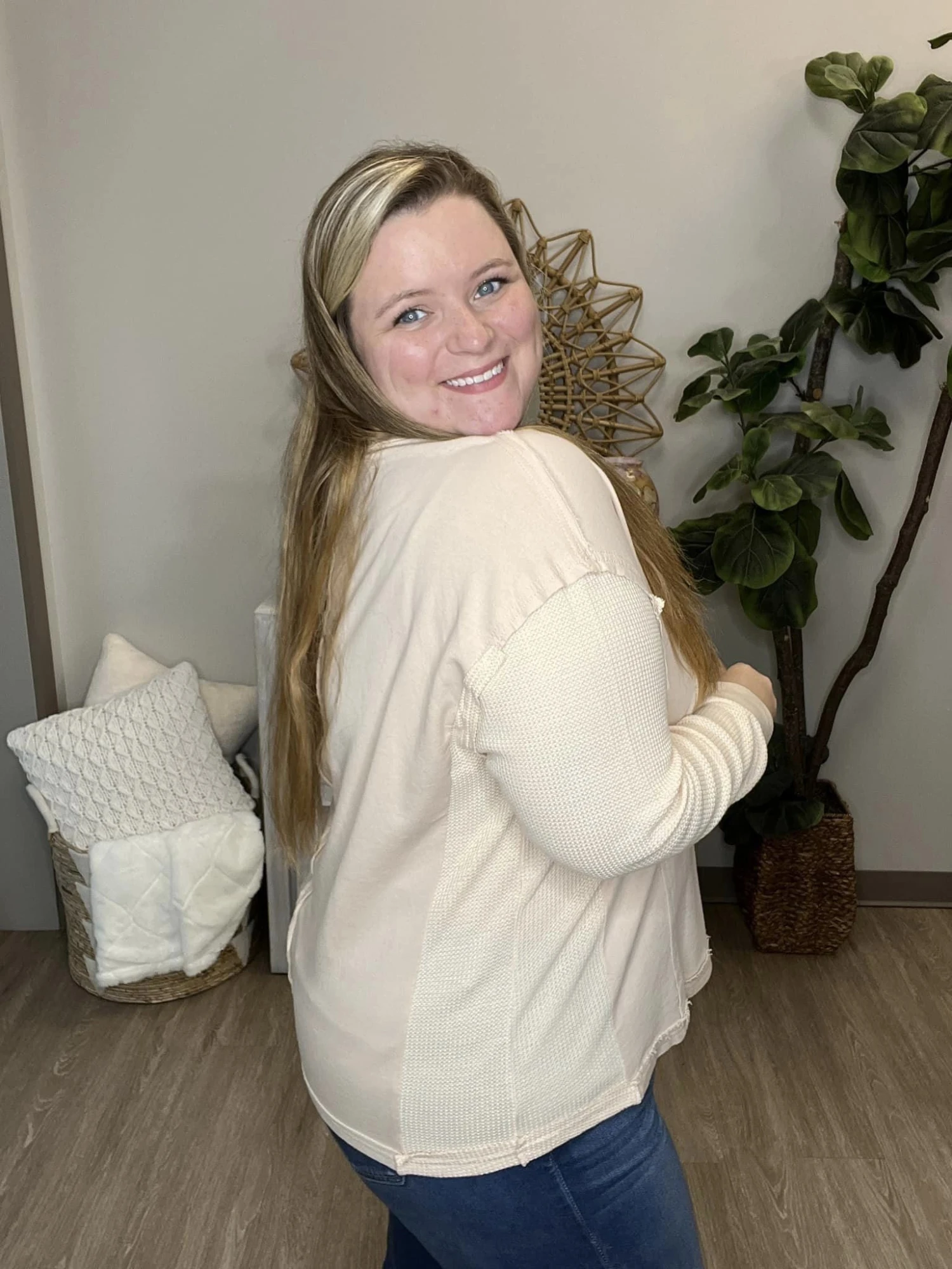 Check out this cute waffle knit top! The “Clearing Up Top” has a super cute oatmeal color that we are obsessed with! You can’t go wrong with neutrals! Be sure to snag!