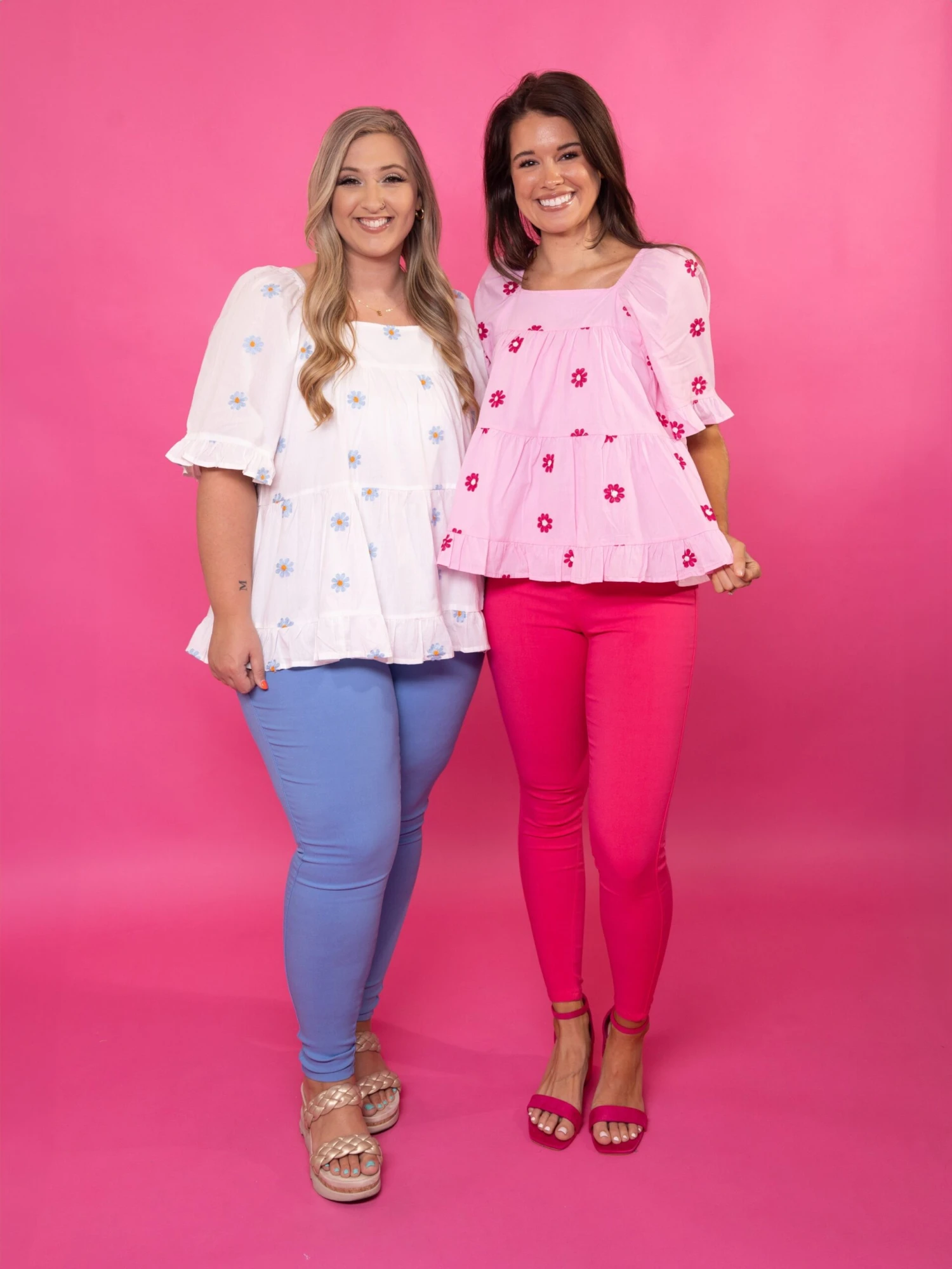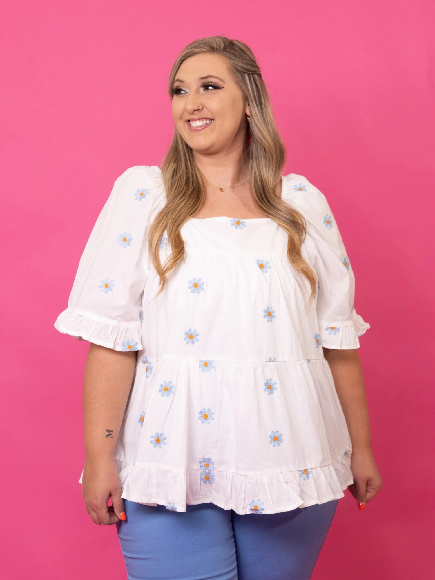 This top is so so so adorable! The balloon sleeves, embroidered daisies, and square neck make it the perfect choice for brunch dates! Elevate your style today!