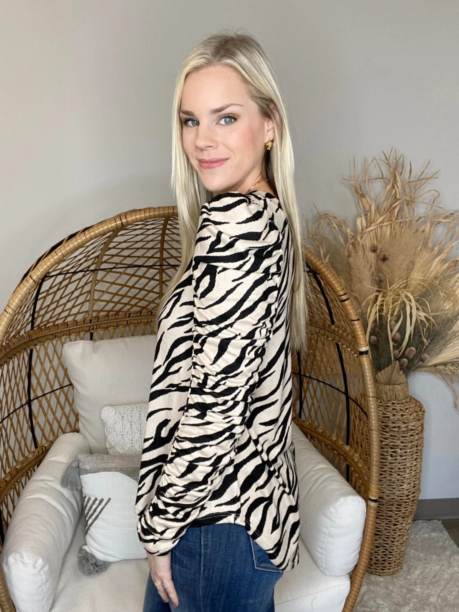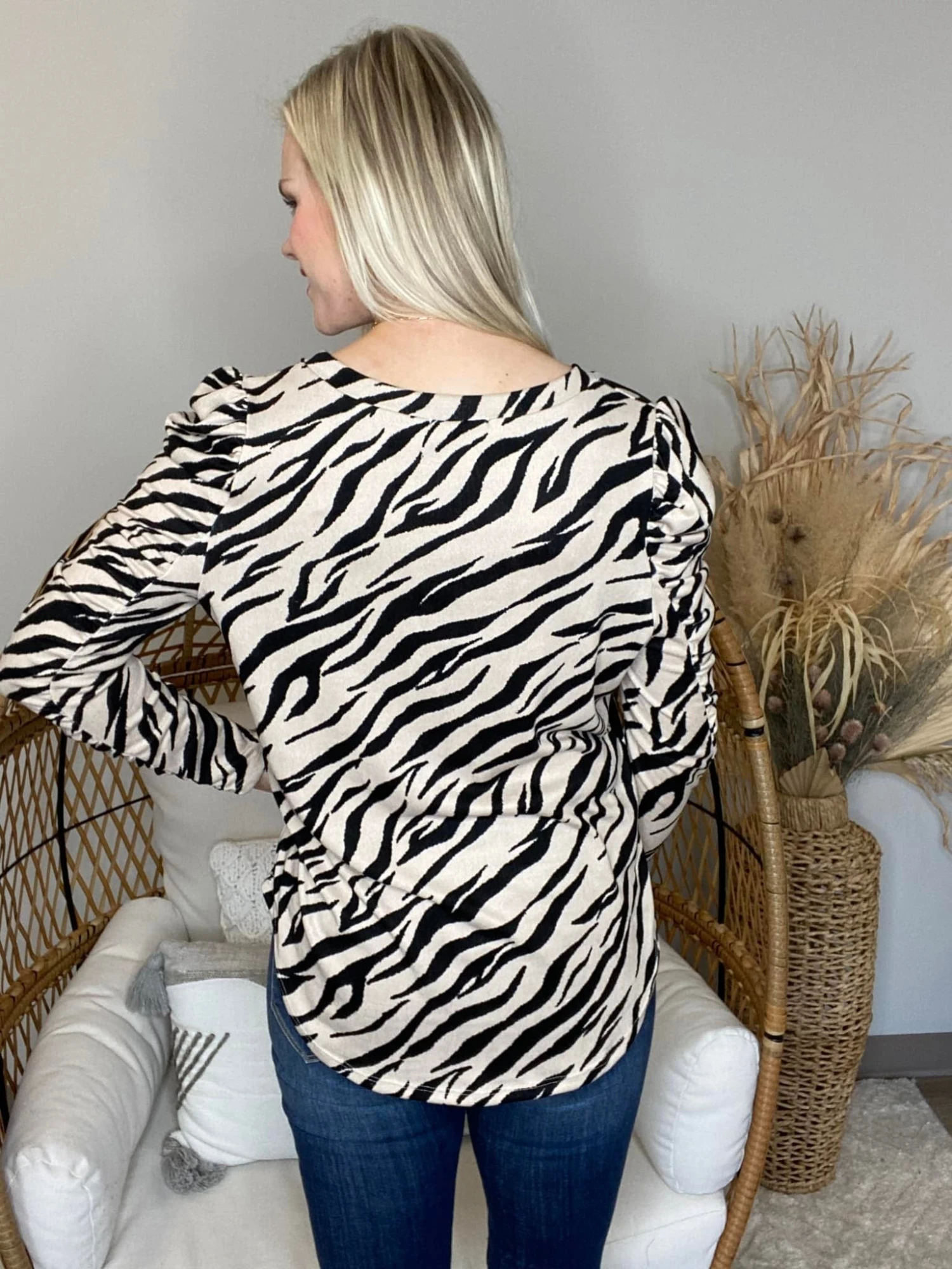 The “Dance It Out Top” has arrived! With the puffy sleeves and the zebra print, this top is a must-have! Super trendy and perfect for a night out! Be sure to snag one while you can!