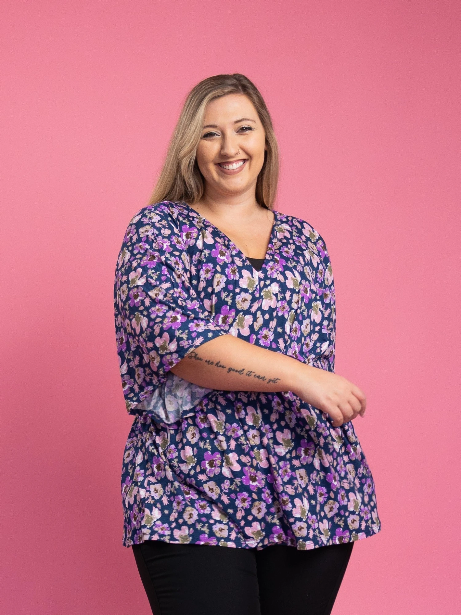 Erin is 5’9, typically 14-16 in denim, Large-X-Large in tops, 36C bra. Wearing size XL