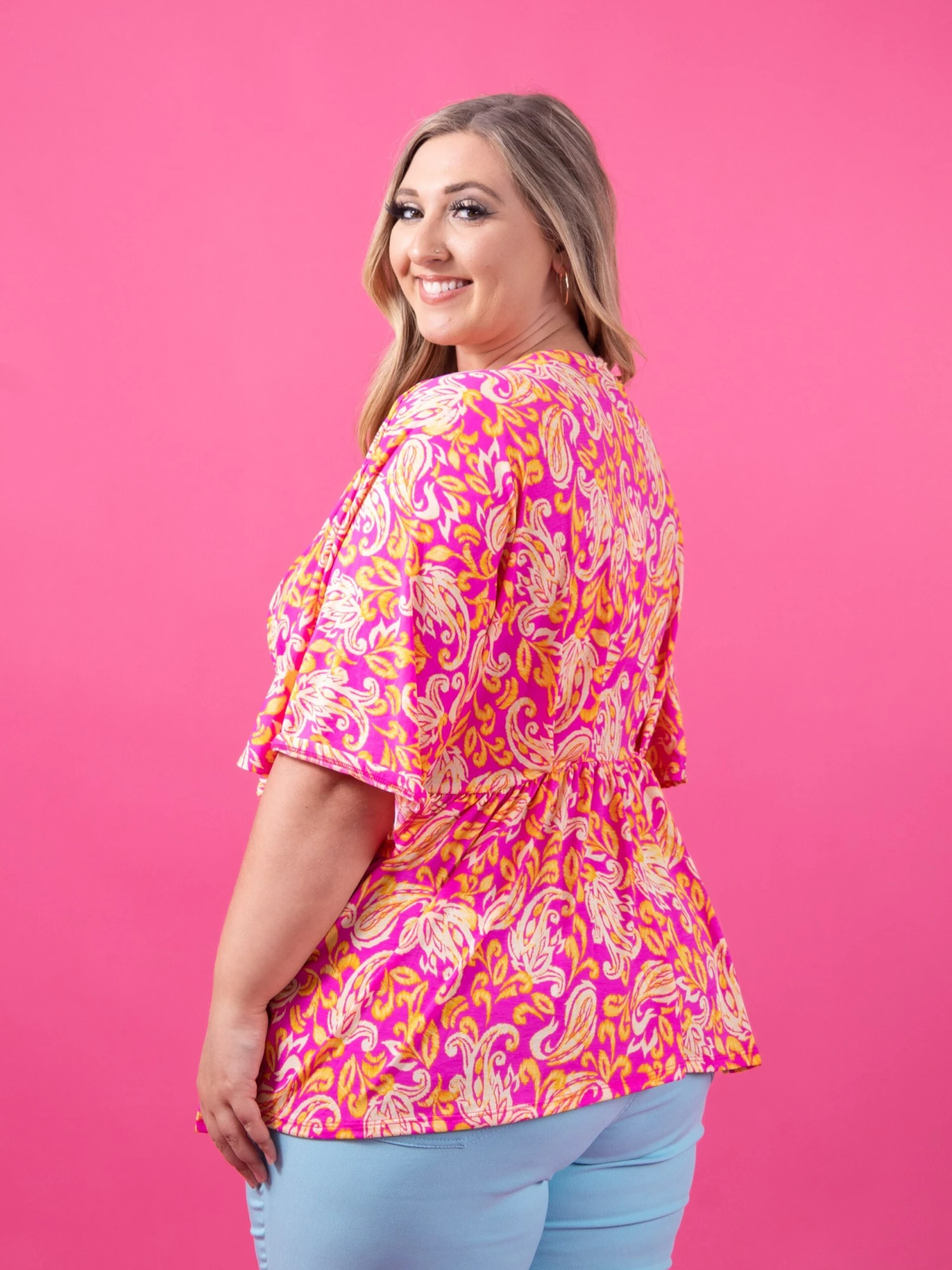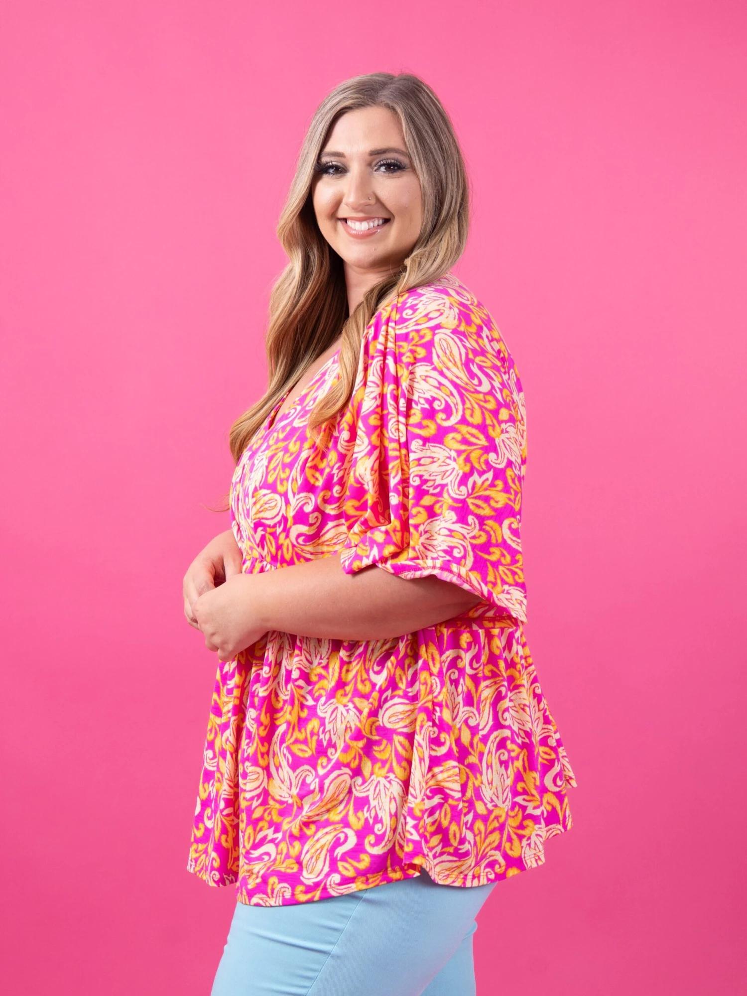 Features: Wrinkle Free, V-Neck, Babydoll, Short Sleeves, Print