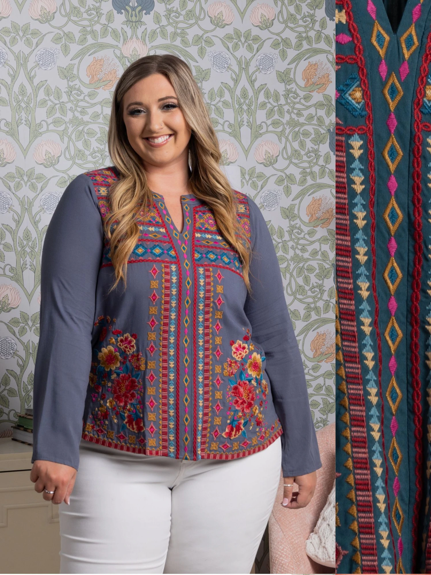 Erin is 5’8, 36C bra, typically wears size L/XL in tops and 14/16 in denim. Wearing size L