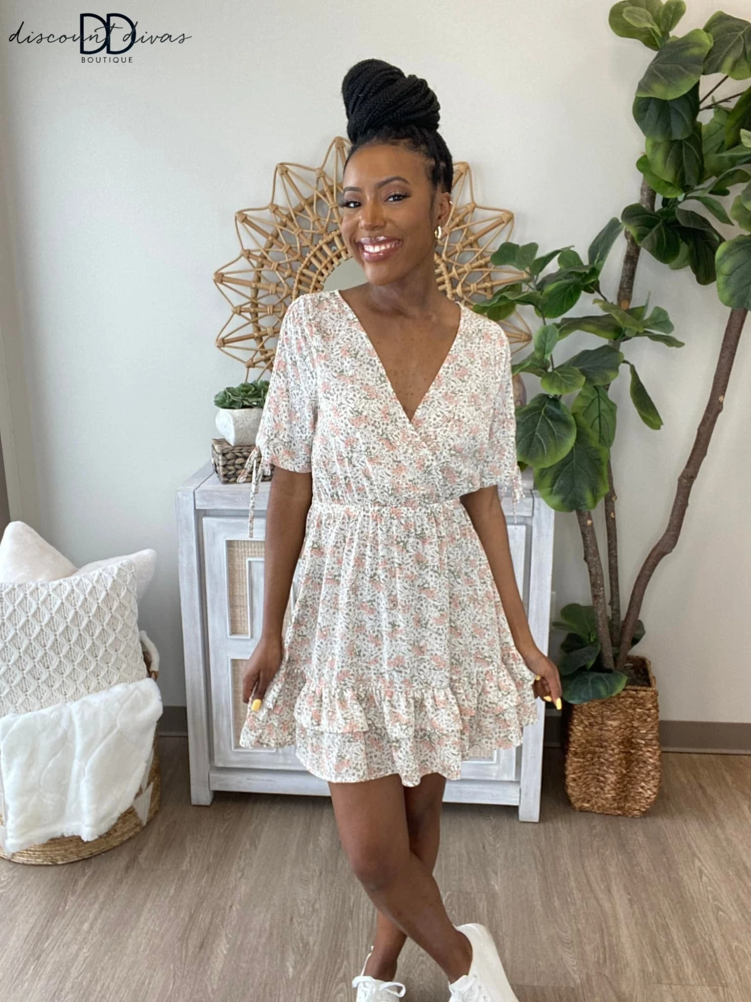 The “Global Love Dress” has arrived! This mini dress is perfect for spring and summer! We love a good floral print and this one delivers! With a wrap detail ruffles, this one is so stylish! Snag one before they are gone!