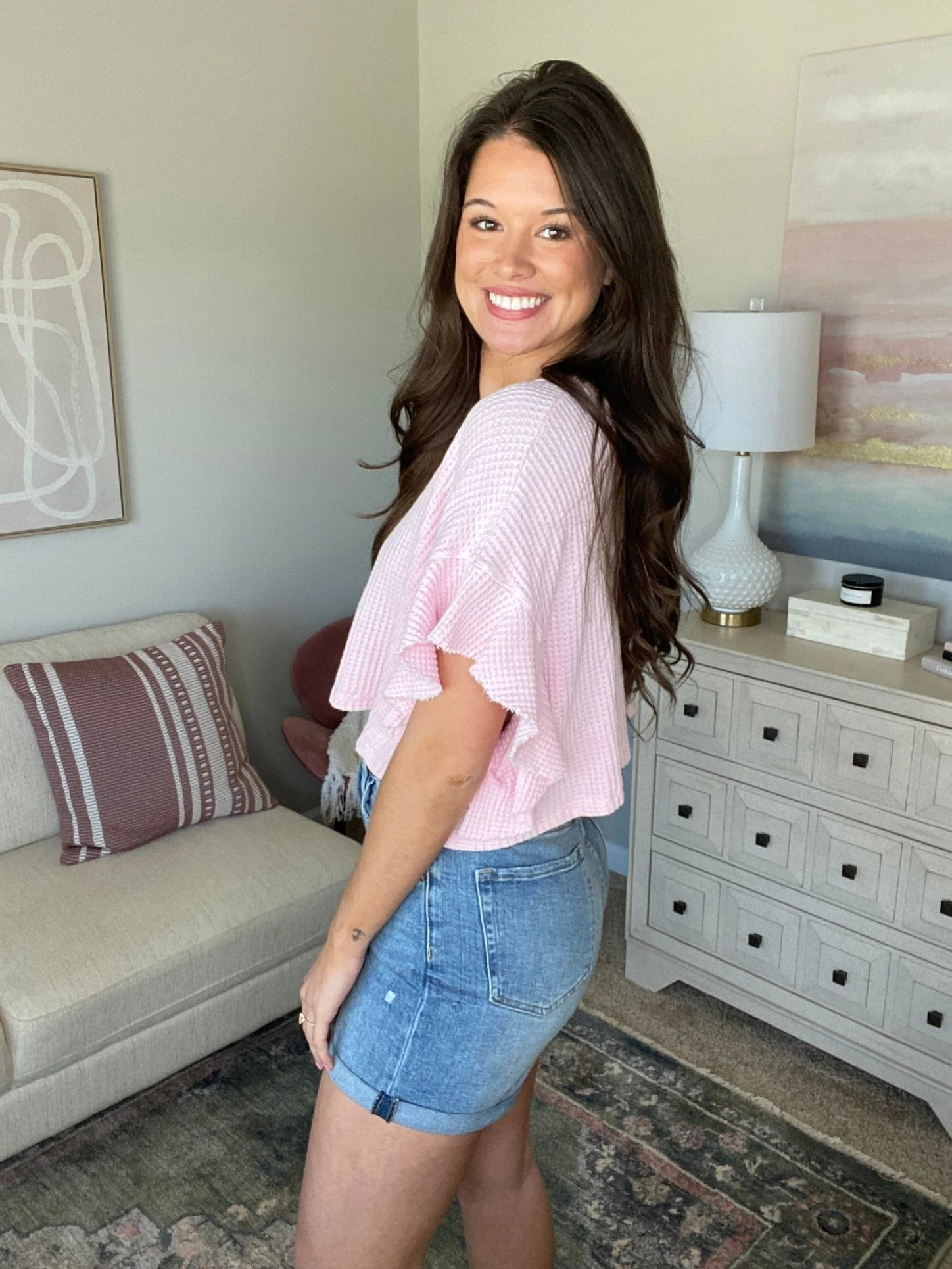 The “Got It Top” has arrived! This flutter sleeve top is a must have! With a waffle knit design, this one is simply stylish! The perfect way to subtly dress up your wardrobe, snag one of these colors before they sell out!