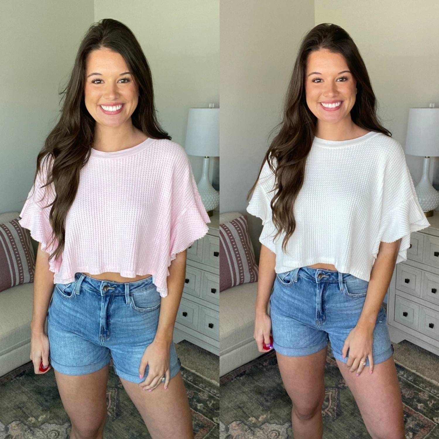 Features: Waffle Knit, Flutter Sleeve