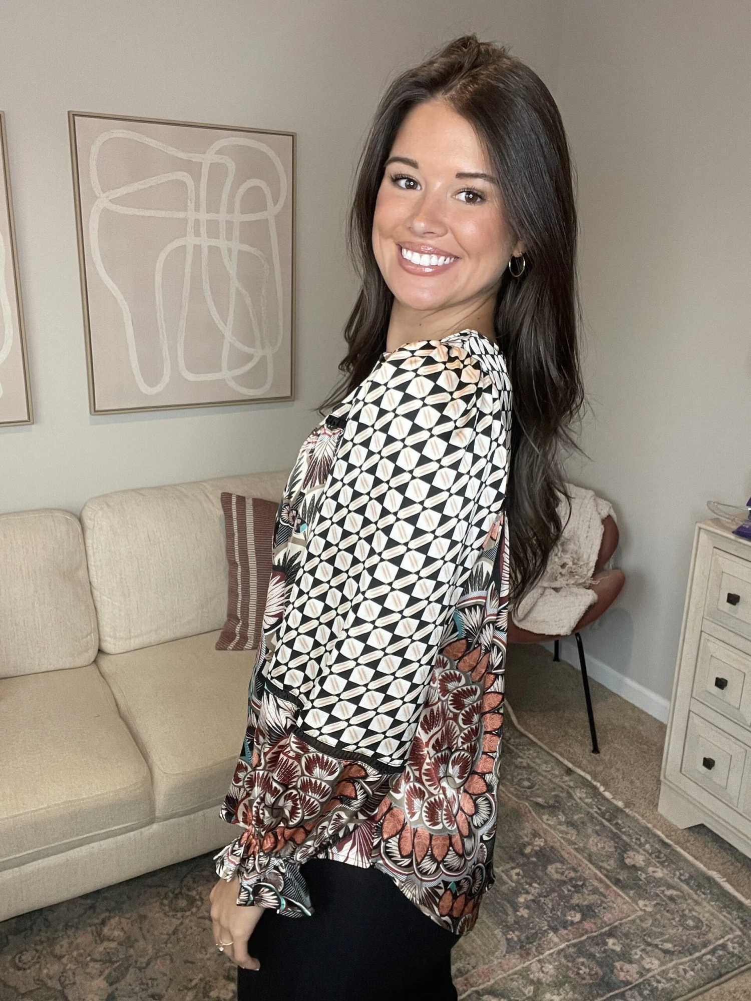 This top has so many fun details! Dress it up with your favorite necklace & a pair of earrings!