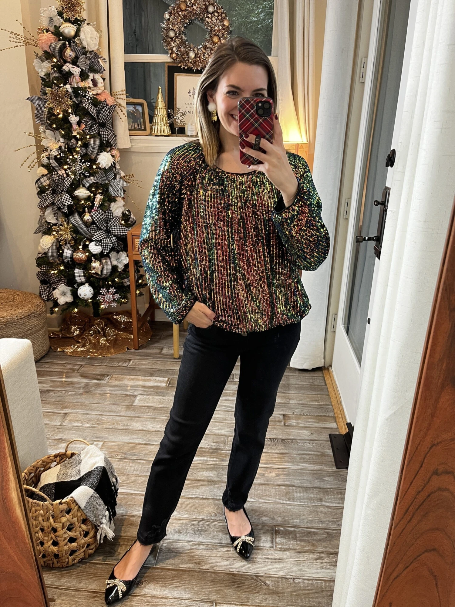 Multi Color Sequin Bubble Sleeve Top | S-L *Final Sale*
