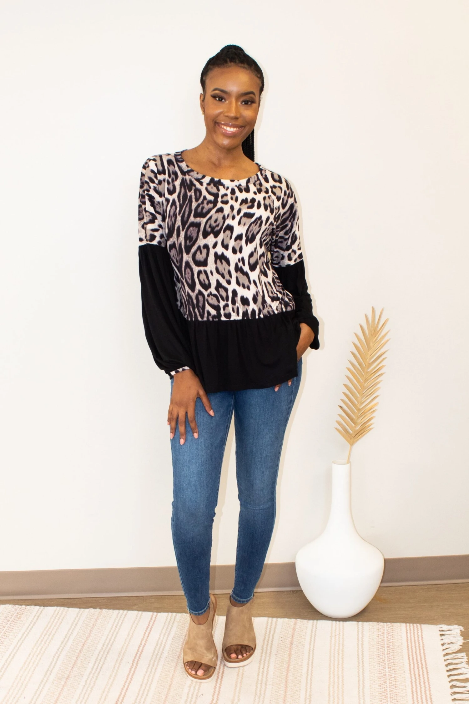 The My Academics Top is here! Perfect for my animal print lovers! Featuring a color-block detail, this number is a must have! This one is teacher approved, snag one before they sell out!