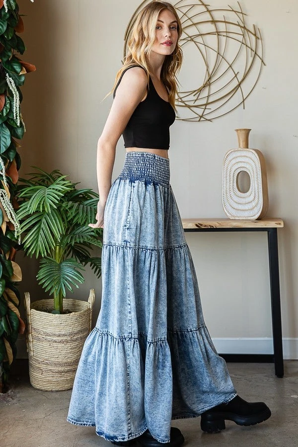 Oli & HaliWashed Tercel Tiered Wide Leg Pants | S-XL