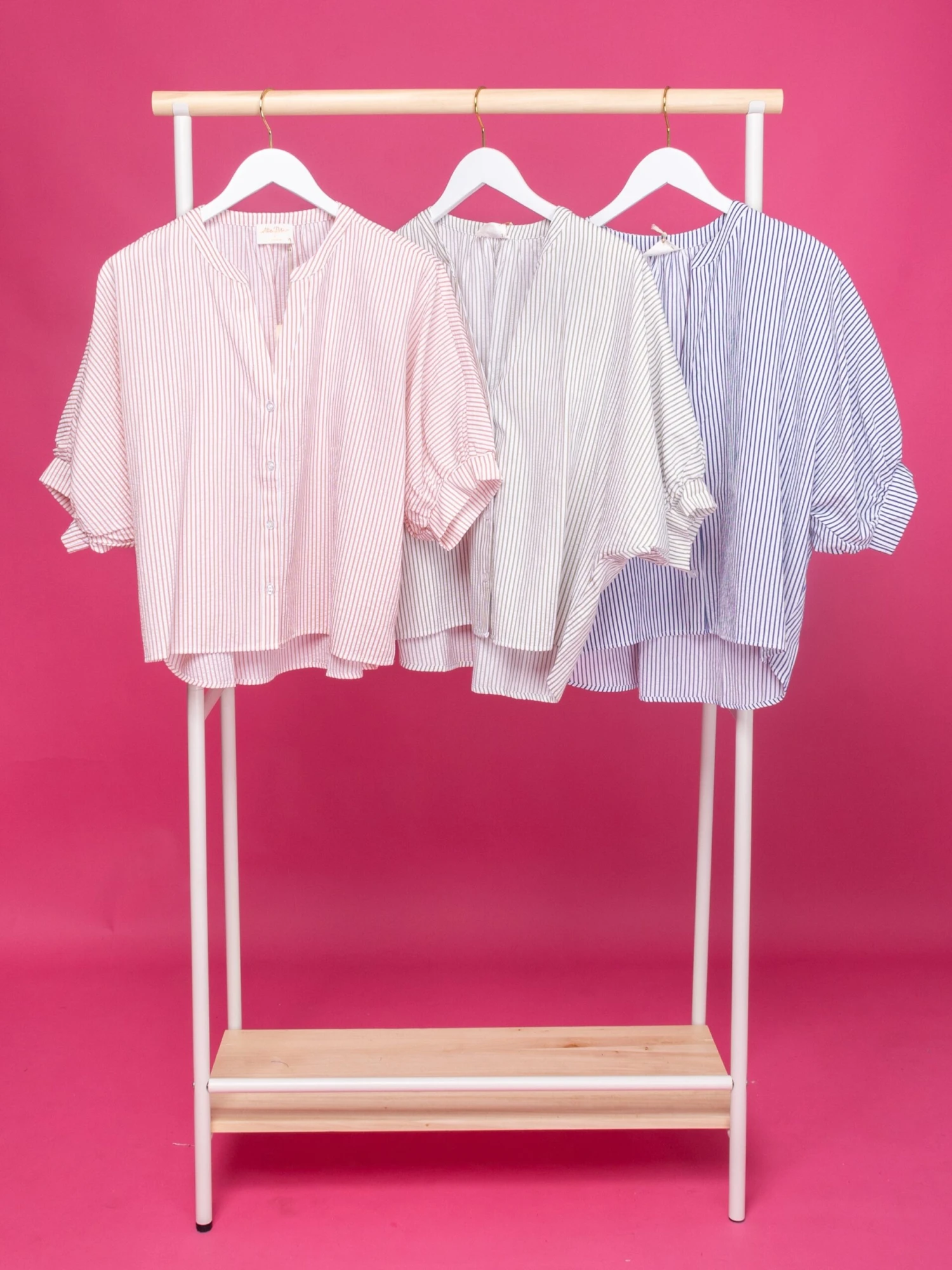 Features: Split Neck, 3/4 Sleeves, Button Down