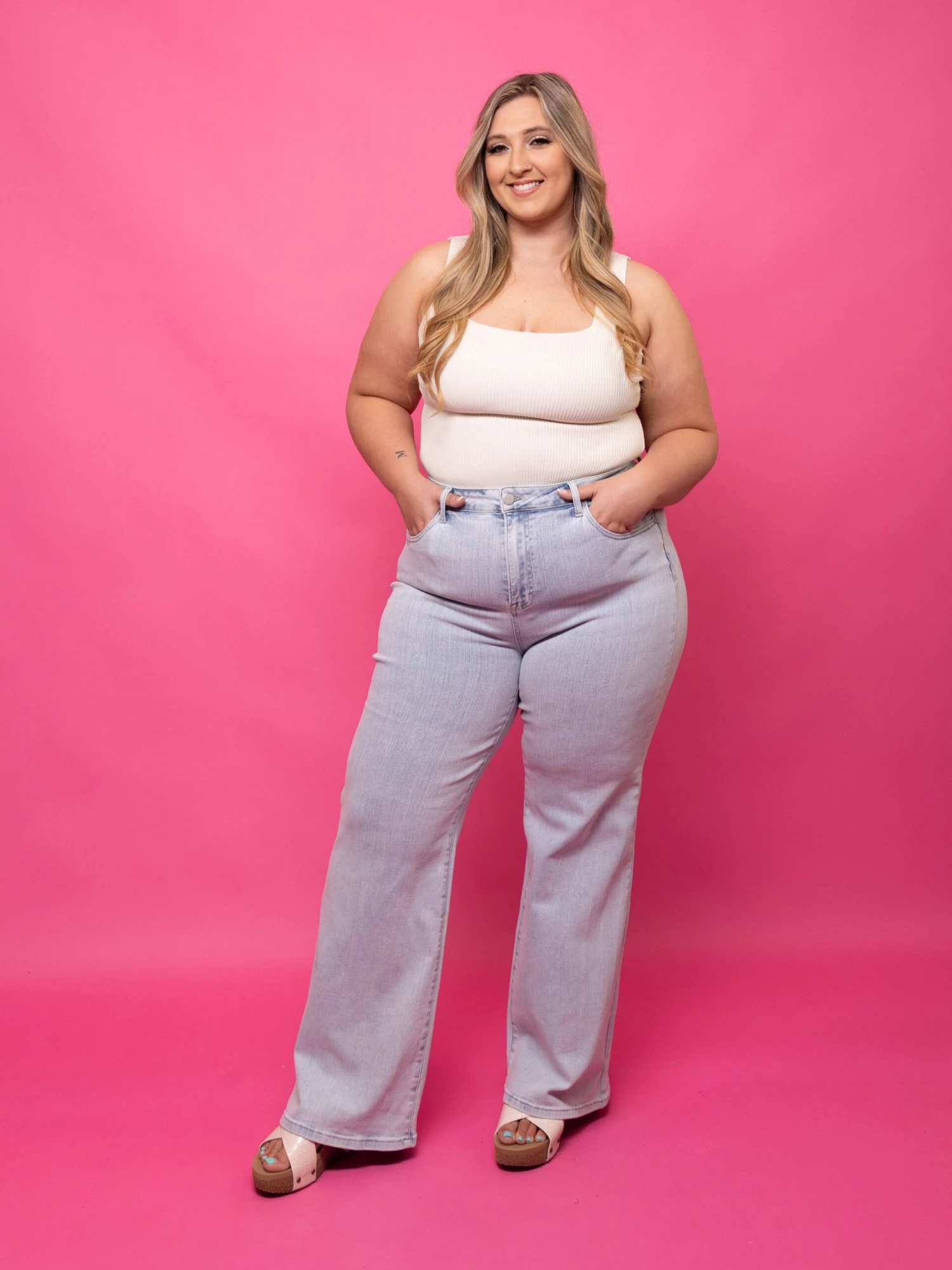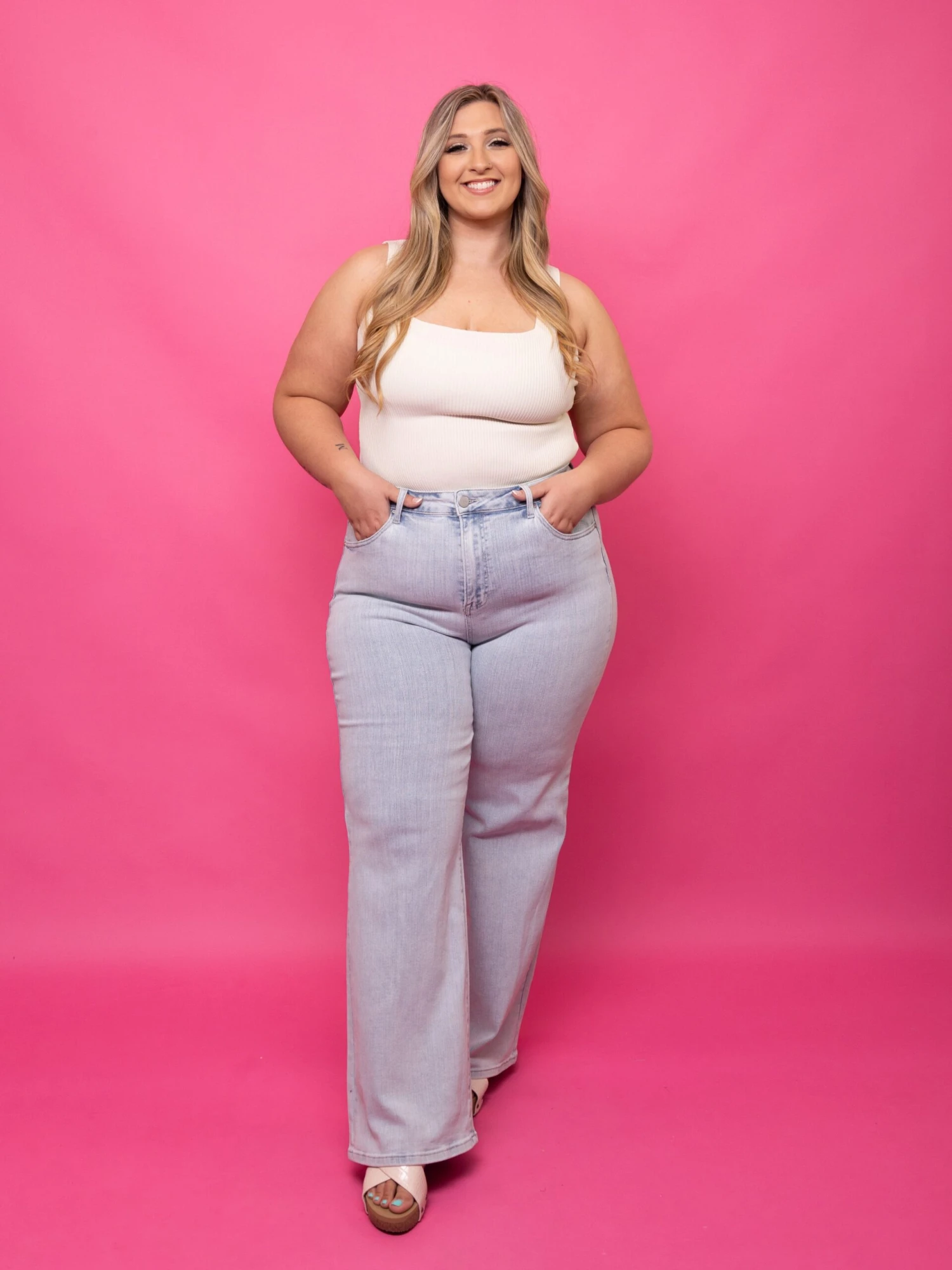 Erin is 5’9, 36C bra, typically wears size L/XL in tops and 14/16 in denim. Wearing size 1X