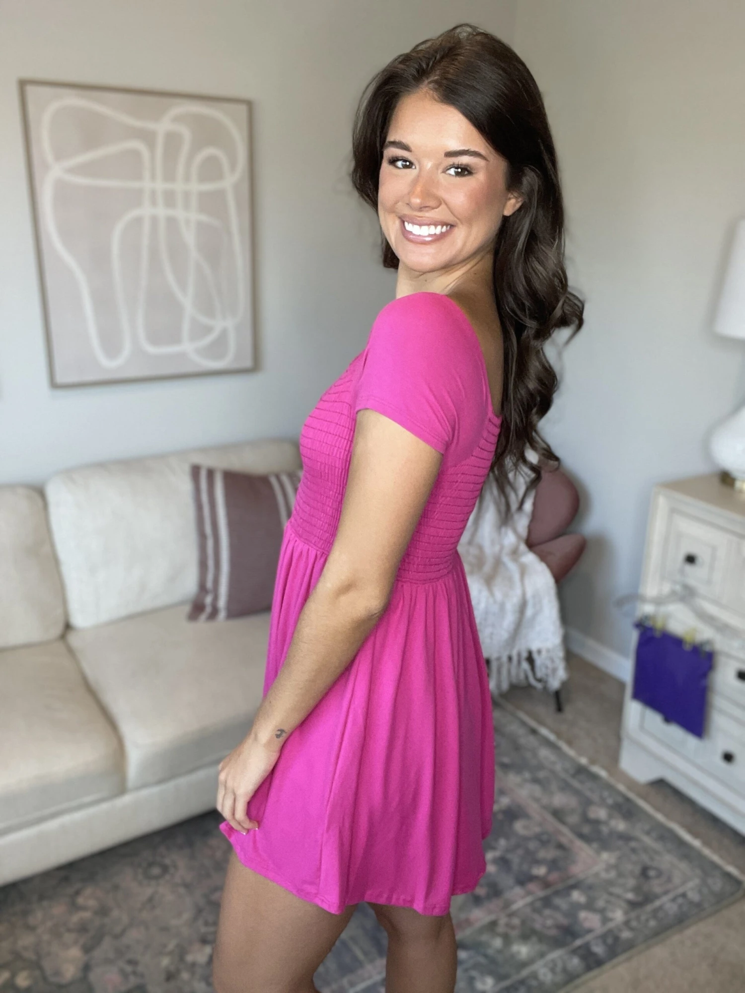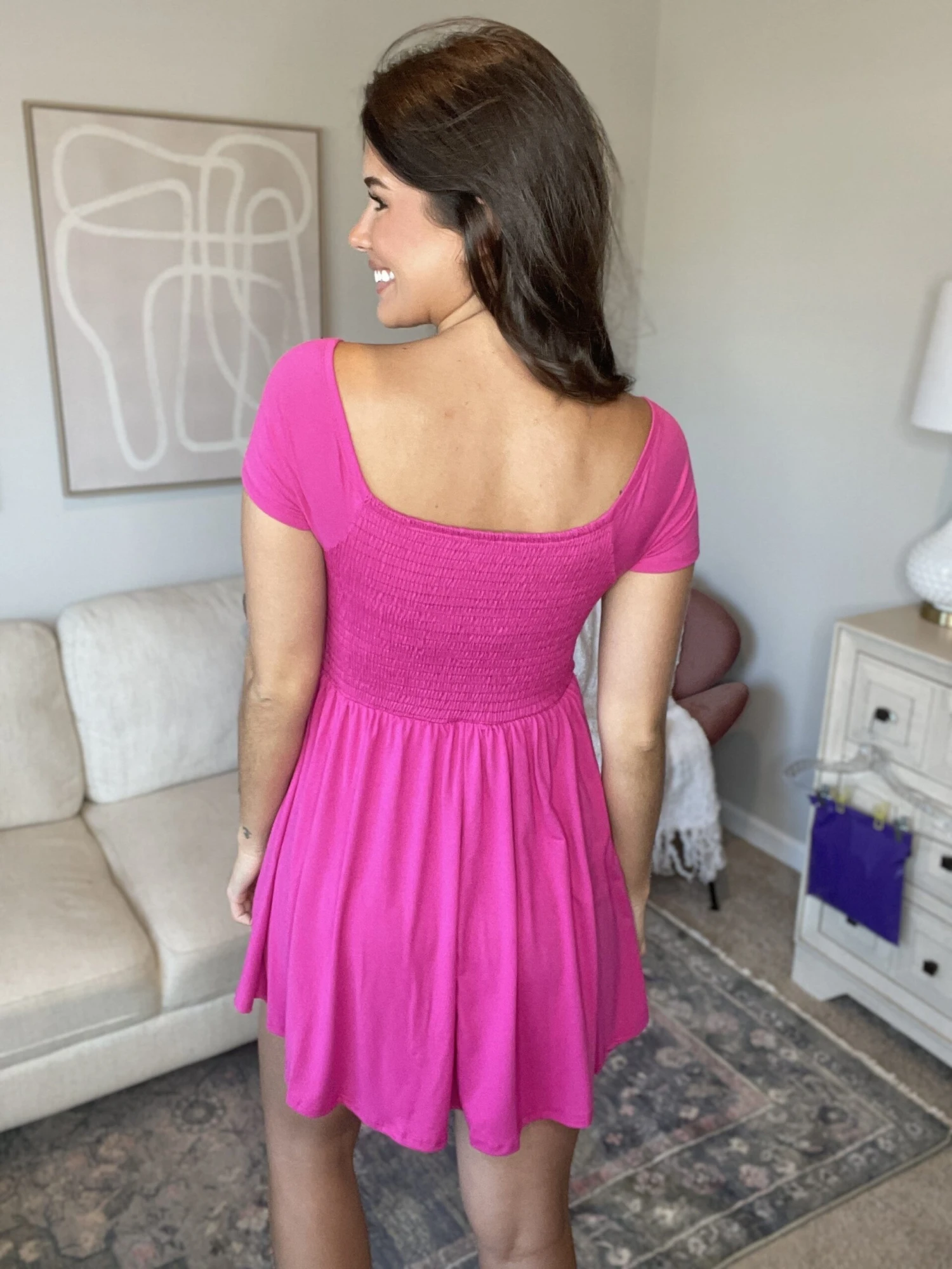 Features: Short Sleeves, Smocked Bodice, Pockets on Shorts