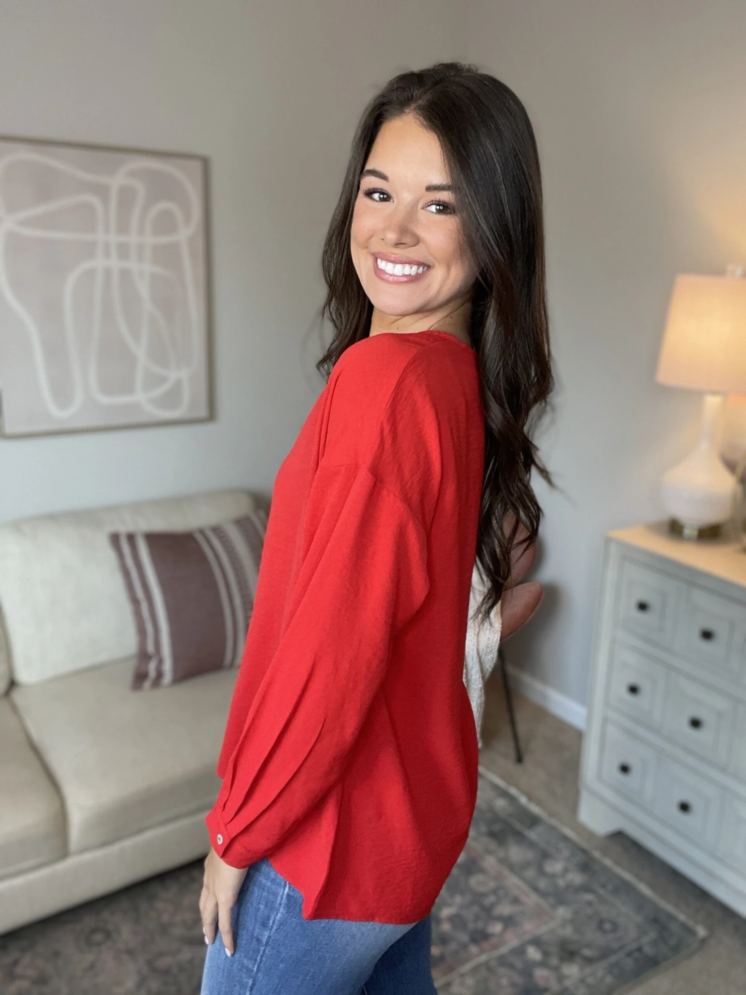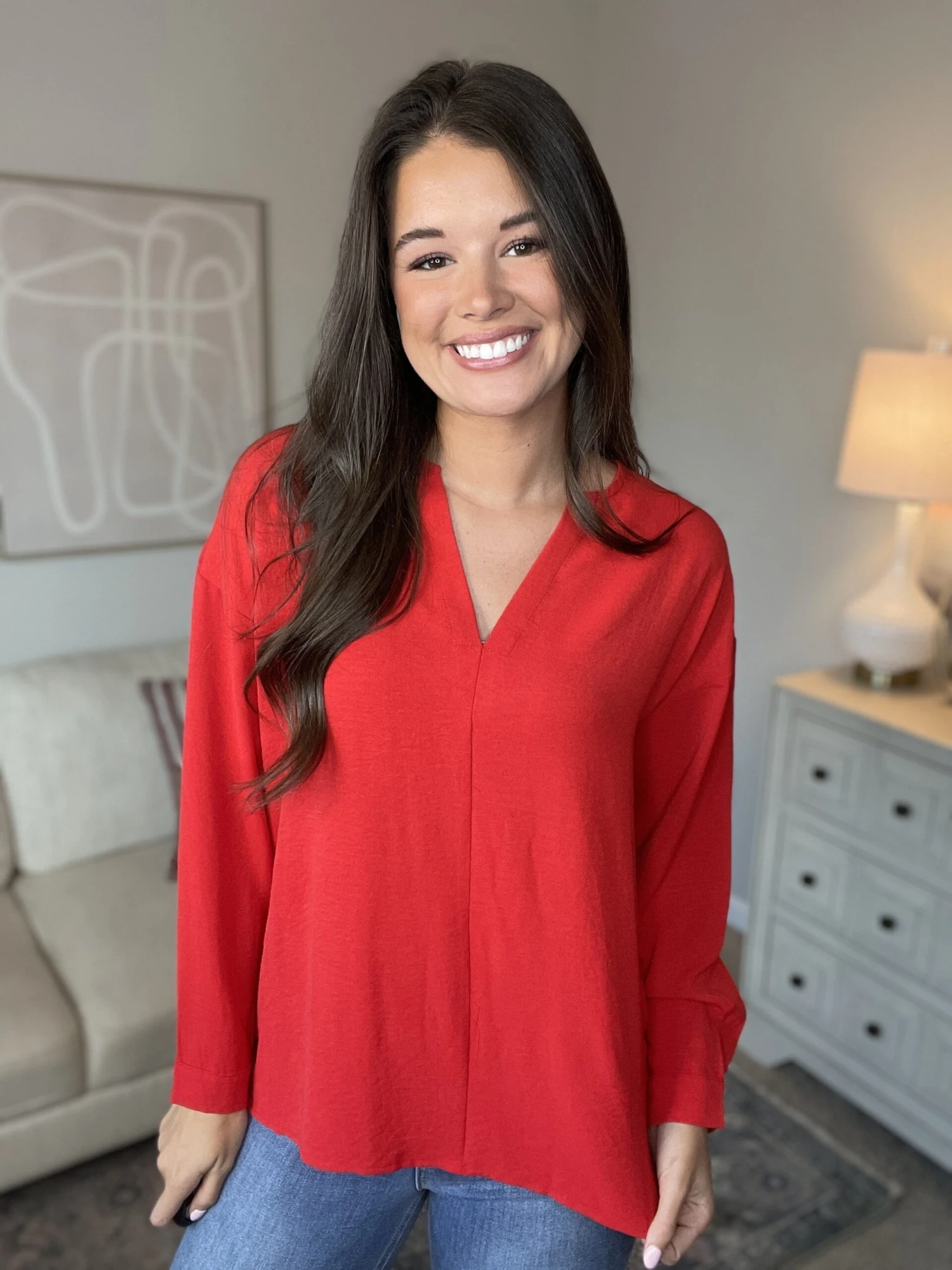 A versatile top to pair with so many bottoms! Pair with slacks to dress it up or jeans to dress it down! This flattering top is a true closet essential!