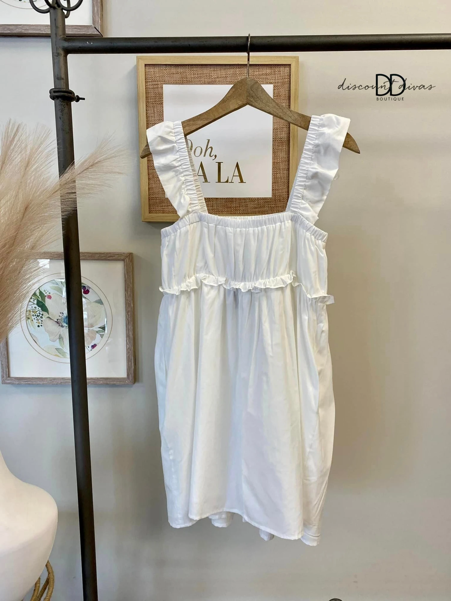 Features: solid print, square neck, sleeveless, ruffle elastic straps