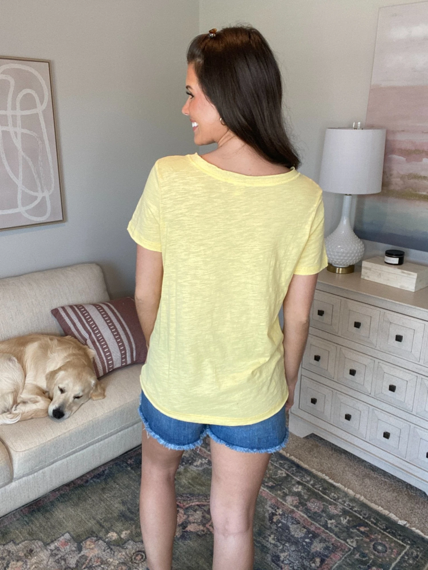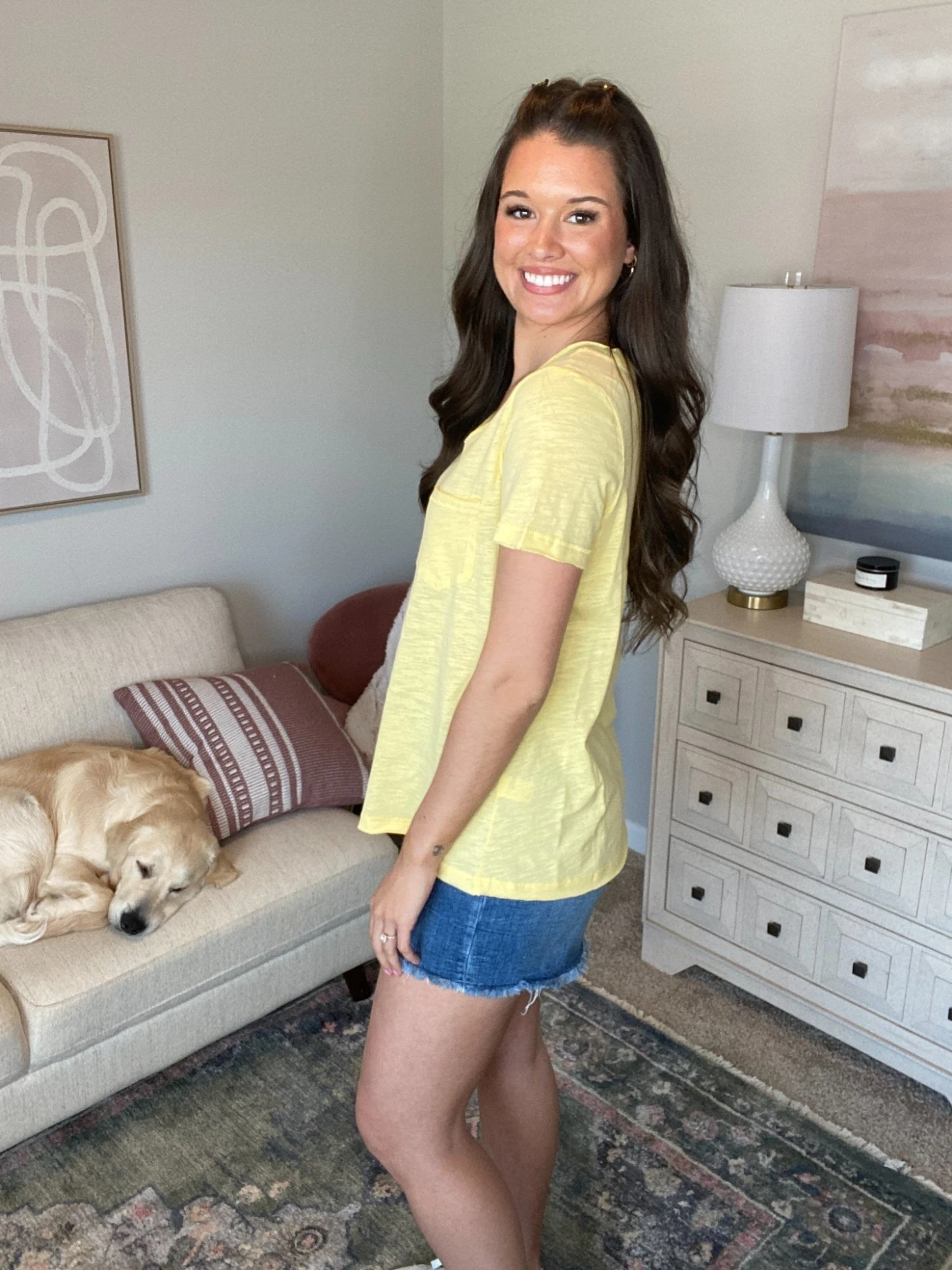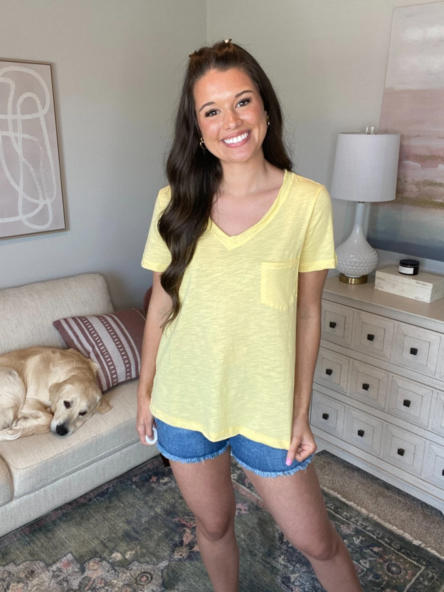 The “That Was Nice Top” has arrived! This short sleeve top is a must have! With a front pocket, this one is simply stylish! Pair with denim or shorts, the possibilities are endless! Snag one before they sell out!