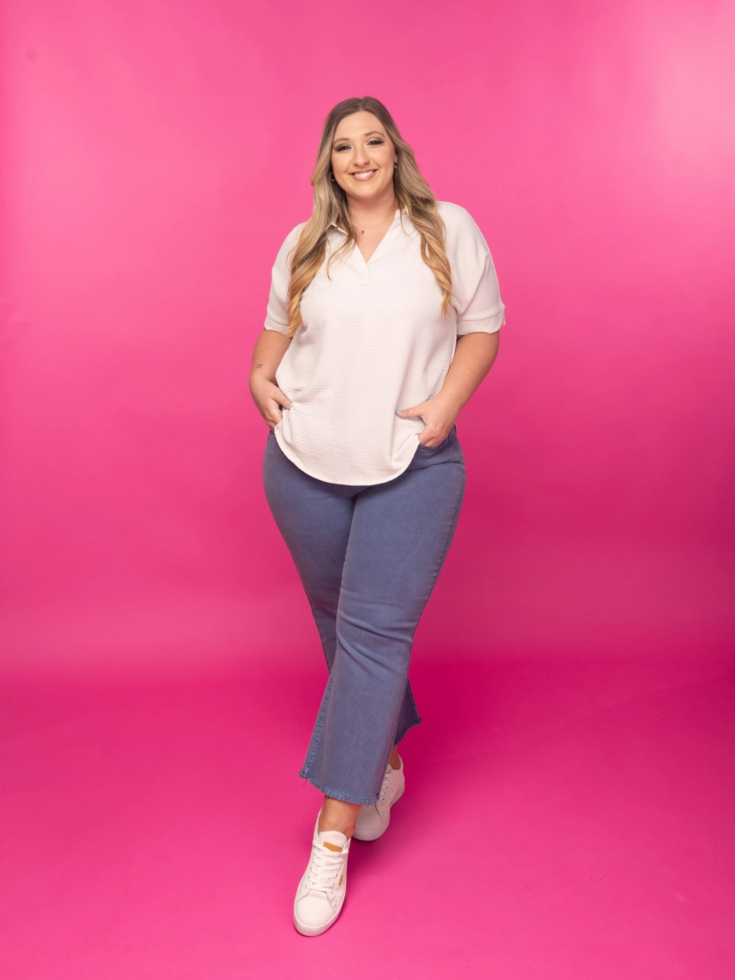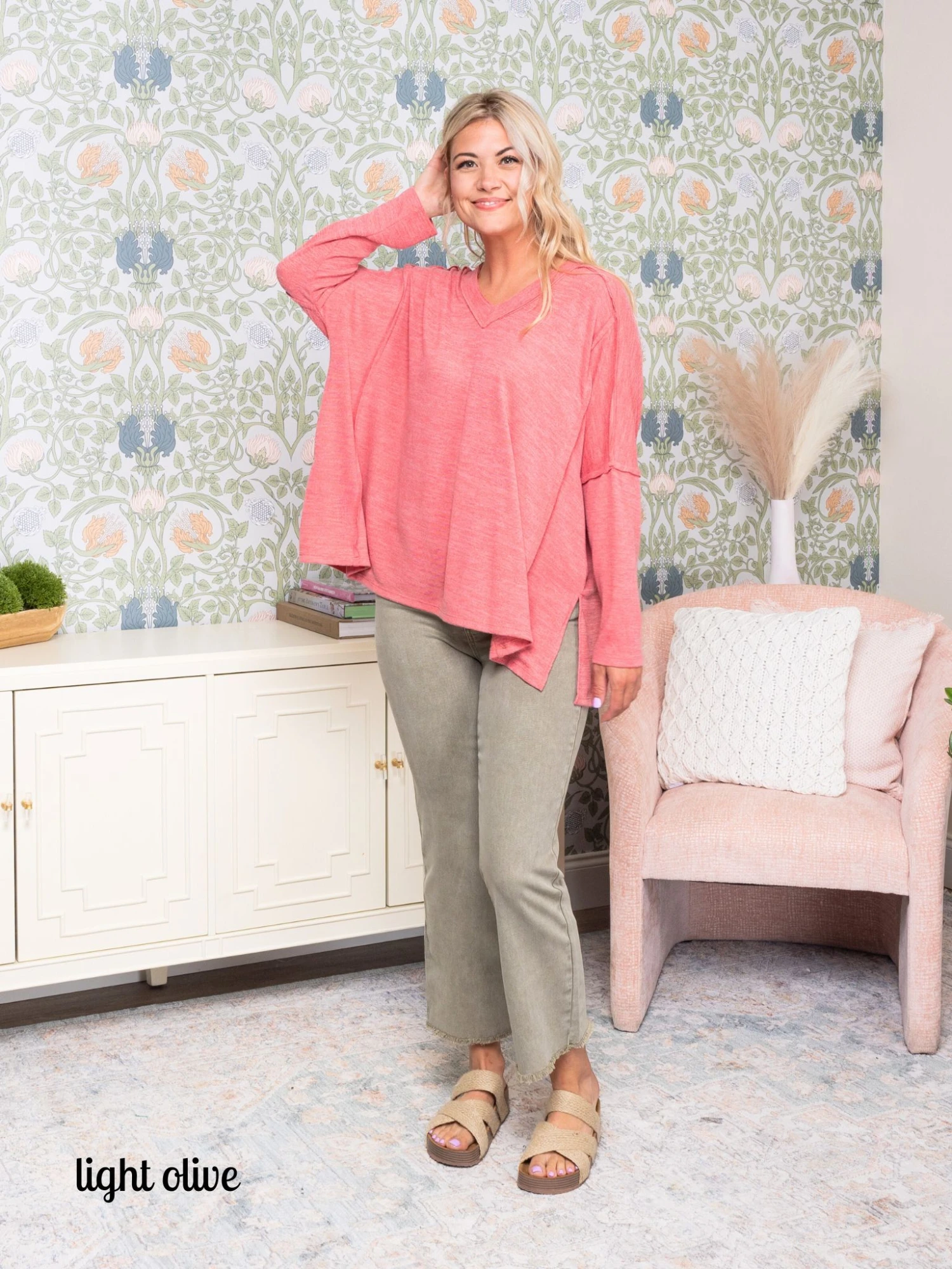 Brittany is 5’10, typically a size small in tops, size 6 or 28/29 in Denim. Wearing the size Small.